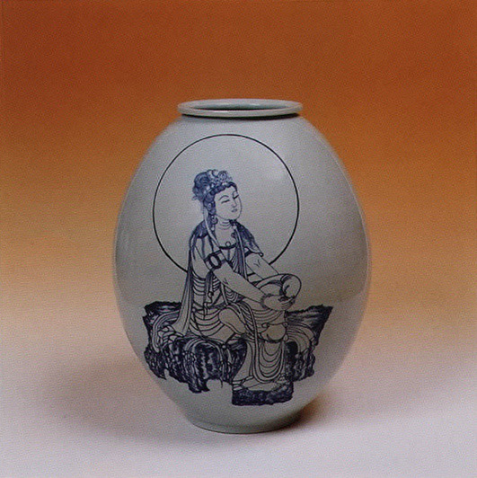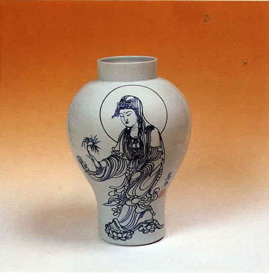 Ven. Manbong did not hold his first local exhibition until 1989. The early 1990s brought with them two exhibitions in Japan, an unprecedented number of major domestic projects (including those for two new halls at Pongwonsa, and huge paintings for Kakwonsa in suburban Chonan and for the Army Headquarters Dharma Hall at Mt. Kyeyong), and two pottery & painting exhibitions in Seoul in 1993. Then in October 1998, as he neared his 89th birthday, Ven. Manbong received the much-deserved Order of Cultural Merit Silver Crown, the highest possible cultural award given by the Korean government.