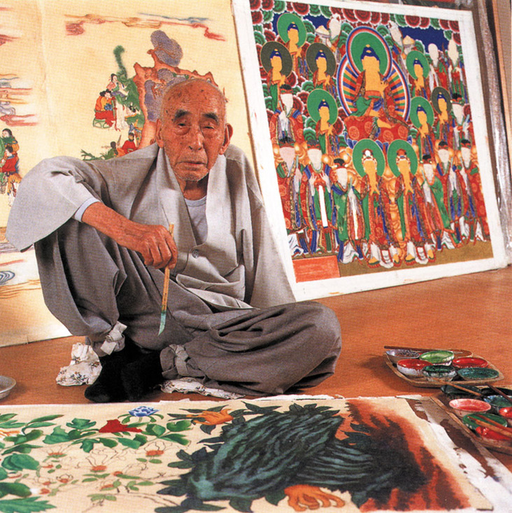 Korea takes pride in the preservation of its culture, and the government in recognition of its rich heritage officially designates certain people and places as national treasures. At 77, Lee Man Bong is Living Treasure of Korea No. 48 and one of his country's masters of Buddhist art.