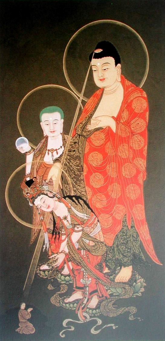 - Triad: Amitabha with Avalokitesvara and Mahasthamaprapta (or Ksitigarbha).