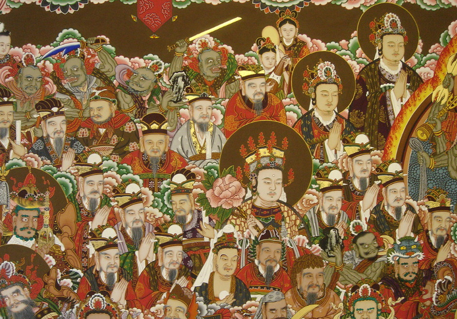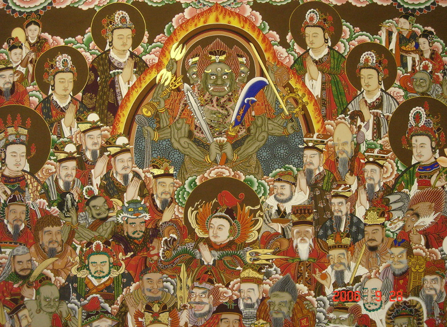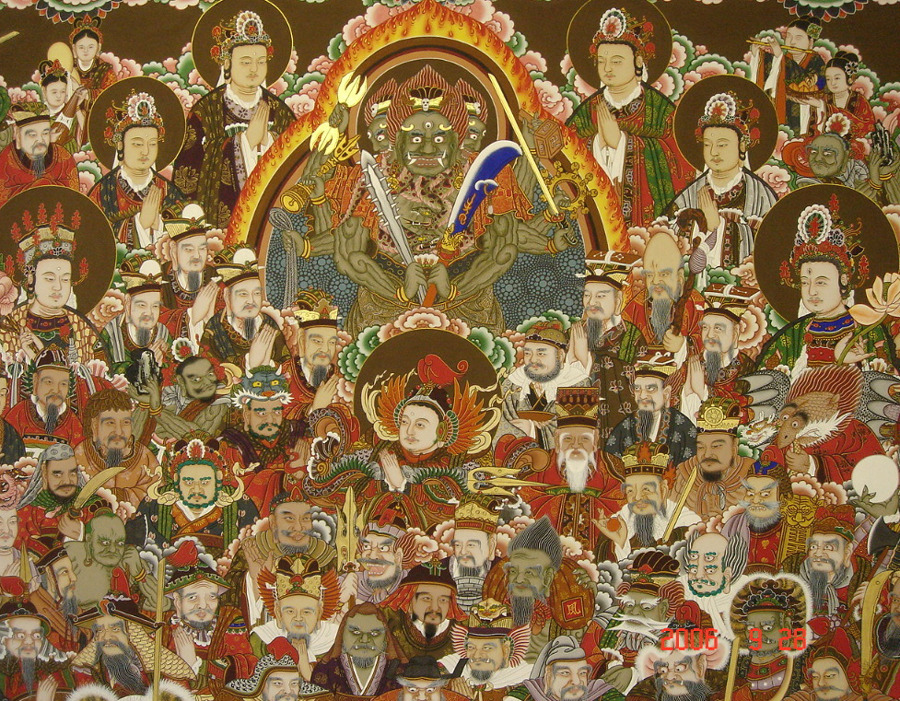 Depending on the size of the temple, and consequently on the number of halls or shrines therein, the Shinjung Taengwha is found in any one of many buildings, but most often on the right wall of the Main Hall.